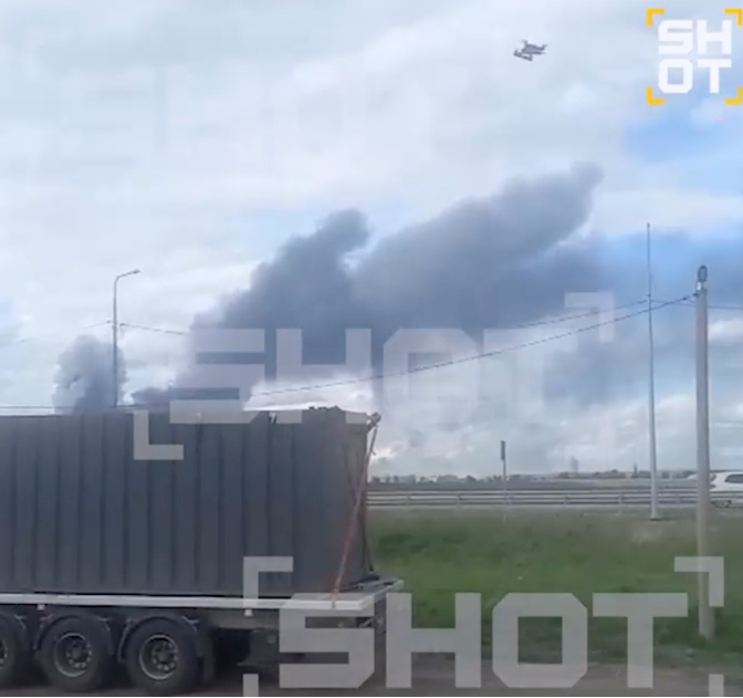 RT報道稱,據悉,烏方使用的無人機是從停在機場附近並裝載着集裝箱的卡車上起飛的。“SHOT”頻道發佈的另一段視頻顯示,在伊爾庫茨克州,幾架無人機從其中一個集裝箱中飛出。視頻中可以看到卡車後方遠處冒出的濃煙,並能聽到槍聲,一名目擊者稱,俄方人員試圖用小型武器擊落無人機。