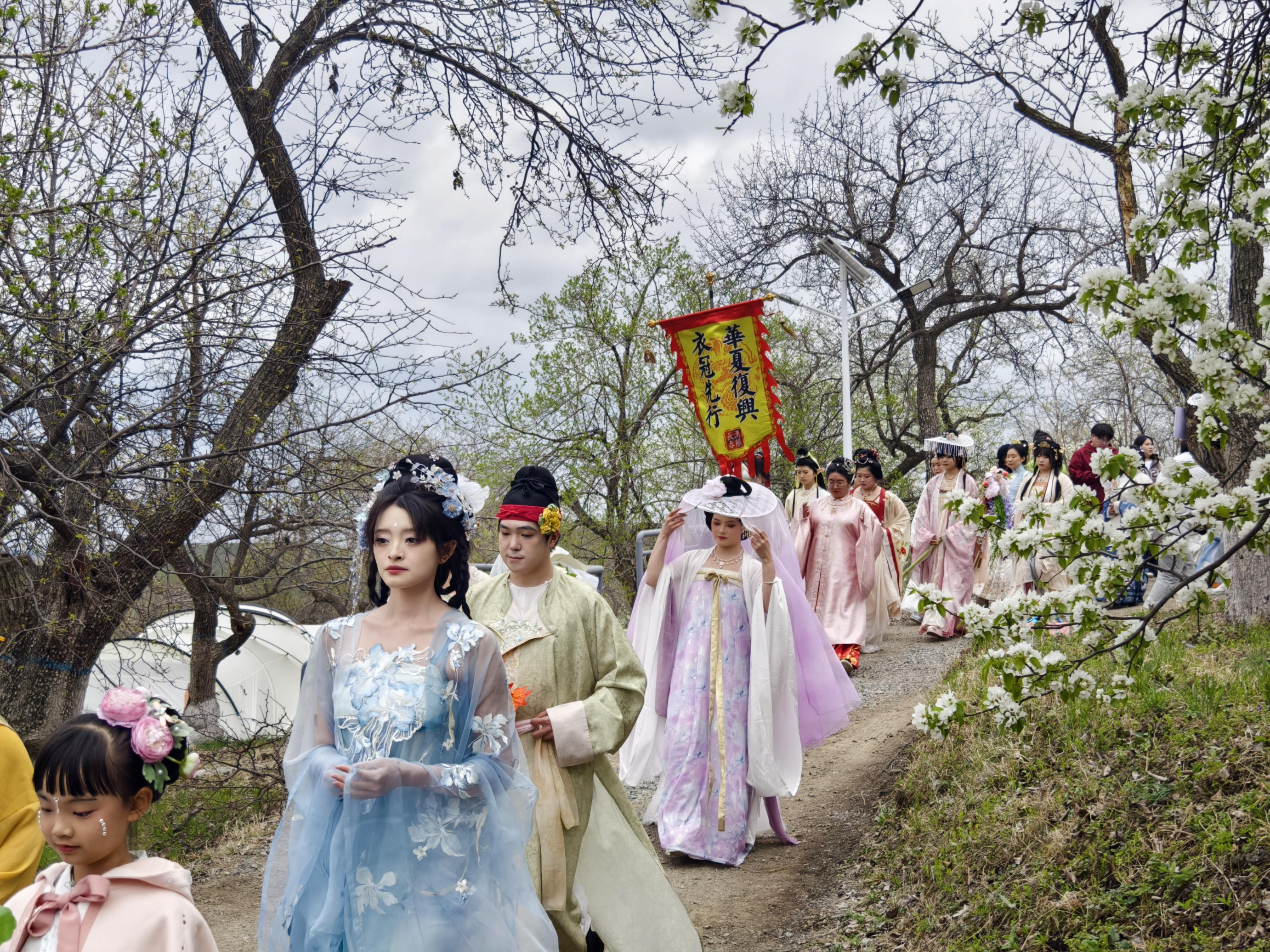 5月1日,在長春蓮花山百年梨園舉辦的吉林省第三屆漢服花朝遊園會暨長春蓮花山梨園漢服文化季活動上,十二花神形象大使選拔賽、漢服巡遊、國風非遺市集等系列活動,不僅展示了梨園的秀美風光,也讓更多人瞭解和喜愛上傳統文化。與百年梨園遙相呼應,在延邊和龍,2025金達萊文化旅遊季通過民俗非遺、農旅融合、潮流體驗、親子研學等八大主題20項活動,打造了一場集非遺傳承、民俗體驗、農旅融合、親子互動於一體的沉浸式文化盛宴。