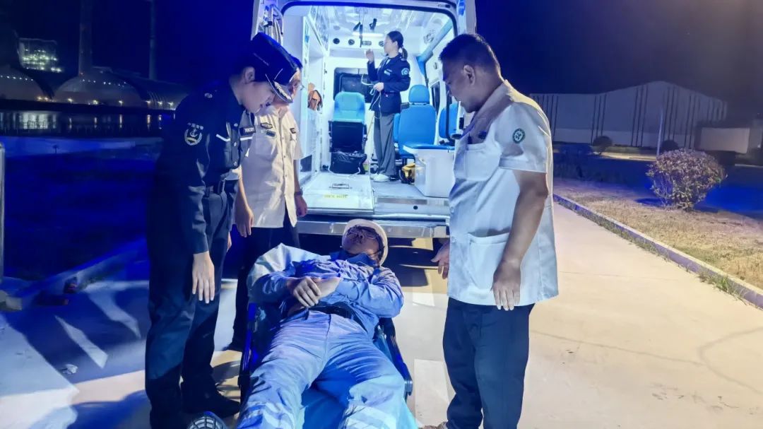 該局迅速響應,派在潿洲島備勤的執法艇前出救助。執法艇頂着7級陣風、浪高1.5米湧浪的惡劣海況全速航行,隨艇醫護人員不斷安撫患者緊張情緒。5時55分,成功將患者送至北海國際客運碼頭,與在岸上等候多時的救護車完成救援接力。