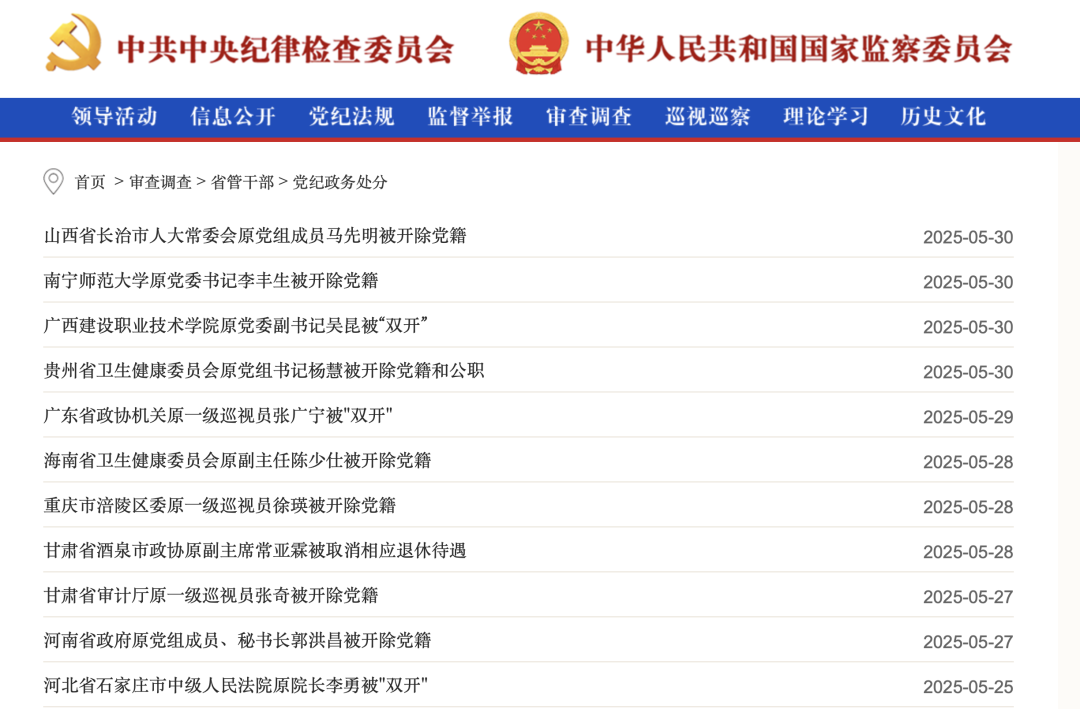 兩名正部級“老虎”落馬!中紀委發佈5月反腐月報