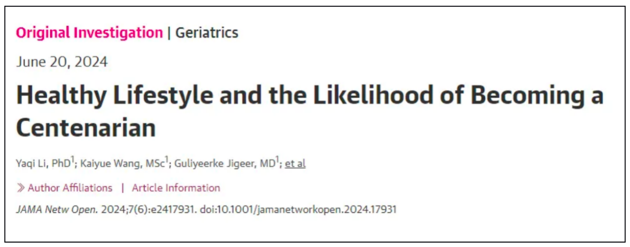2024年6月,復旦大學研究團隊在《美國醫學會雜誌》子刊上發表的一項研究顯示,保持3個健康的生活方式,活到100歲概率增加61%,即使在晚年,堅持3個健康的生活方式也同樣有益。