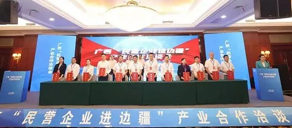 廣西舉辦兩場產業合作洽談會、一場產業合作對接會,簽約68個項目,投資額237.6億元,在新材料、裝備製造、文化旅遊等領域達成一批合作項目;