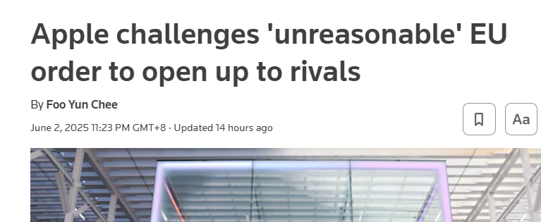 【環球網科技綜合報道】2025年6月2日據路透社消息,蘋果公司已對歐盟要求其向競爭對手開放封閉生態系統的命令發起法律挑戰。與此同時,Alphabet旗下的谷歌也發聲,稱歐盟相關要求不合理,會對創新造成阻礙。