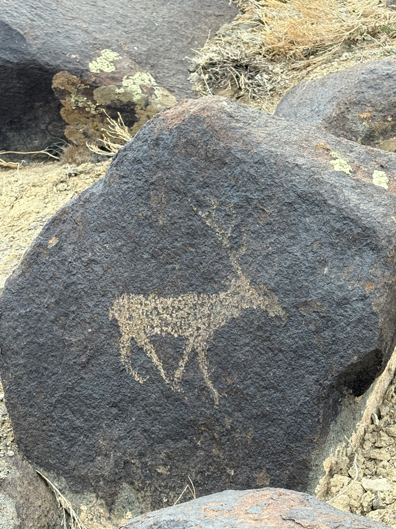 無獨有偶,在第四次全國文物普查中,除博州外,阿勒泰地區、哈密市也有巖畫新發現。4月,青河縣的吾勒肯布勒合巖畫被列入“四普”新發現。60幅以點線鑿刻的巖畫清晰可辨,既有生動的狩獵場景,也有古人對生命繁衍的崇拜。其中,鹿、駱駝、馬等十餘種動物栩栩如生,誇張的鹿角極具藝術感染力。