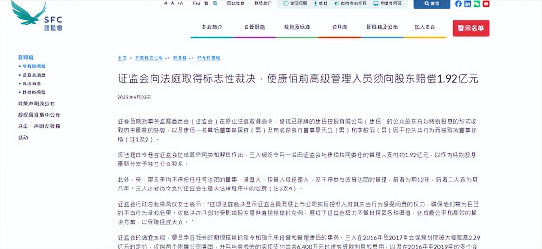 開先例!香港證監會為小股東出頭打官司,獲賠1.92億