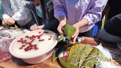 在湖南張家界黃龍洞景區生態廣場,60多名來自印度尼西亞的遊客興致勃勃地參加了“端午佳節·‘粽’情相約”民俗體驗活動。在景區工作人員指導下,印尼遊客從選粽葉、折粽葉、填充糯米到捆紮,學得有模有樣。印度尼西亞遊客魏琳開心地告訴記者,“在這邊非常高興可以體會到自己做粽子,學習怎麼捆,怎麼包紮的感覺。包粽子這個活動,為我的旅遊行程增添歡樂和温暖。”