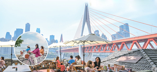 圖②:市民遊客在重慶南岸區龍門浩老街一家餐廳用餐。