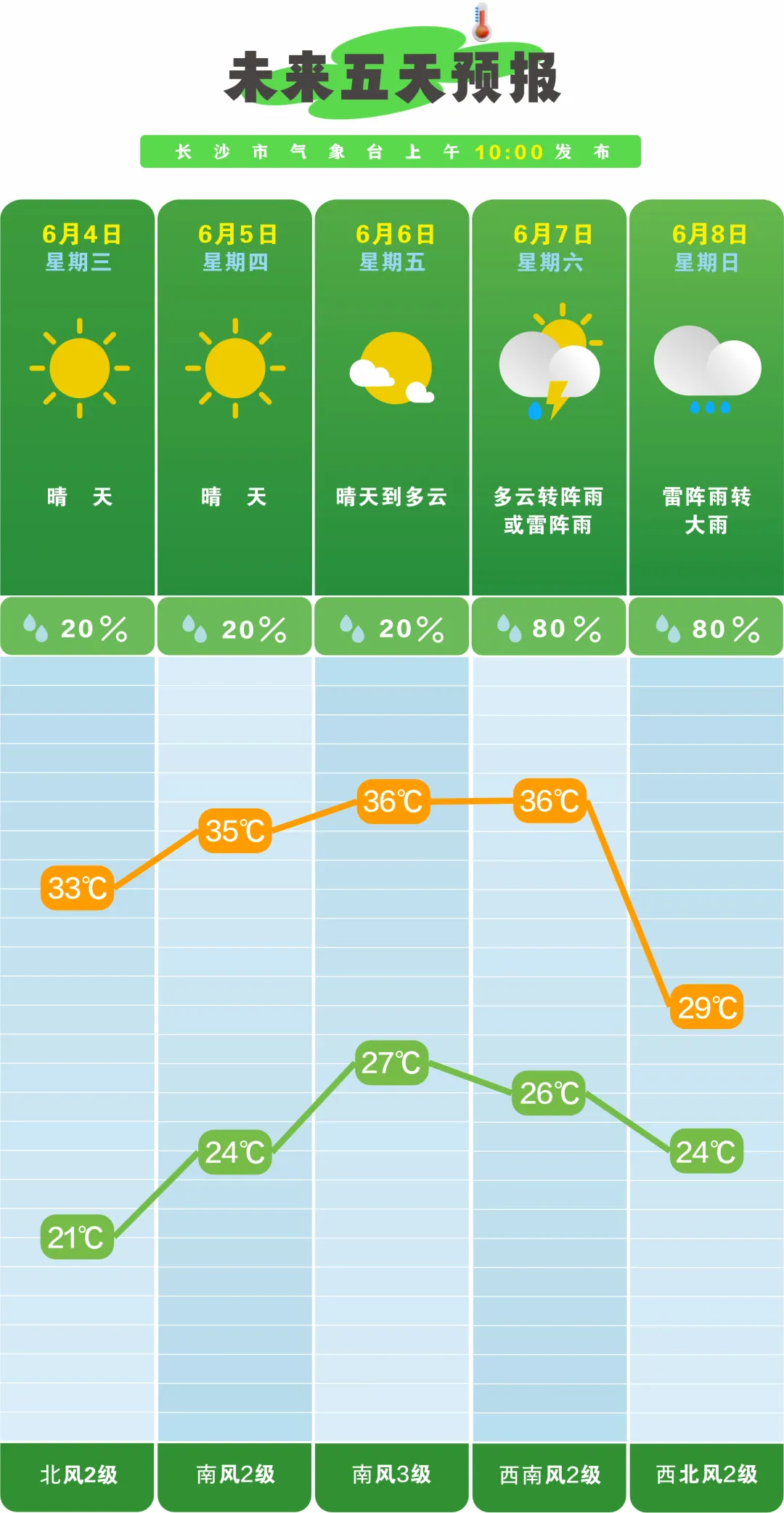 湖南氣象發佈:雷陣雨將至!最高36℃!