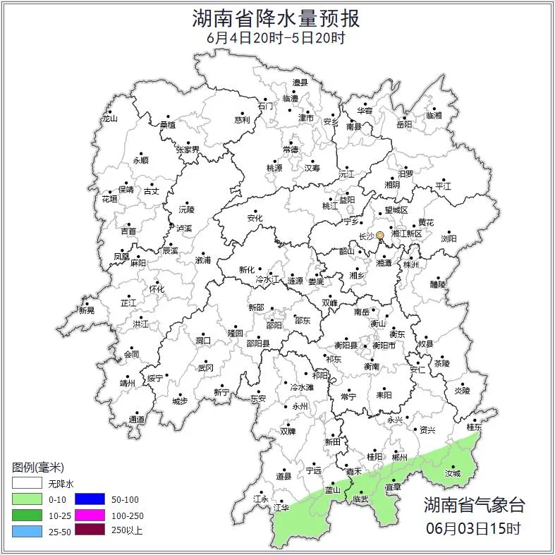 4日晚上至5日白天,晴天間多雲,永州南部、郴州南部局地有陣雨;北風轉南風2~3級;最高氣温32~34℃,最低氣温20~22℃。