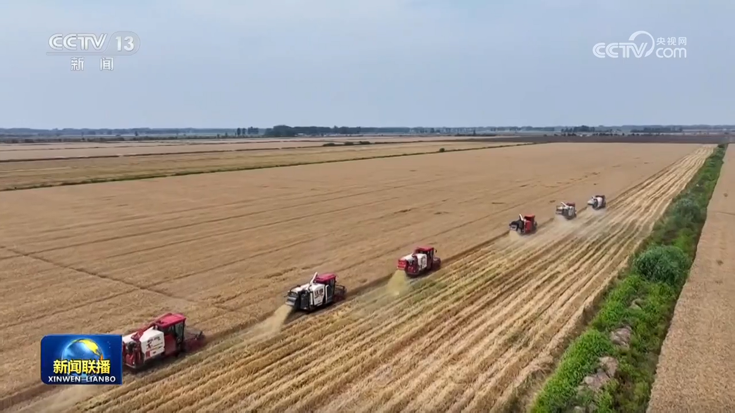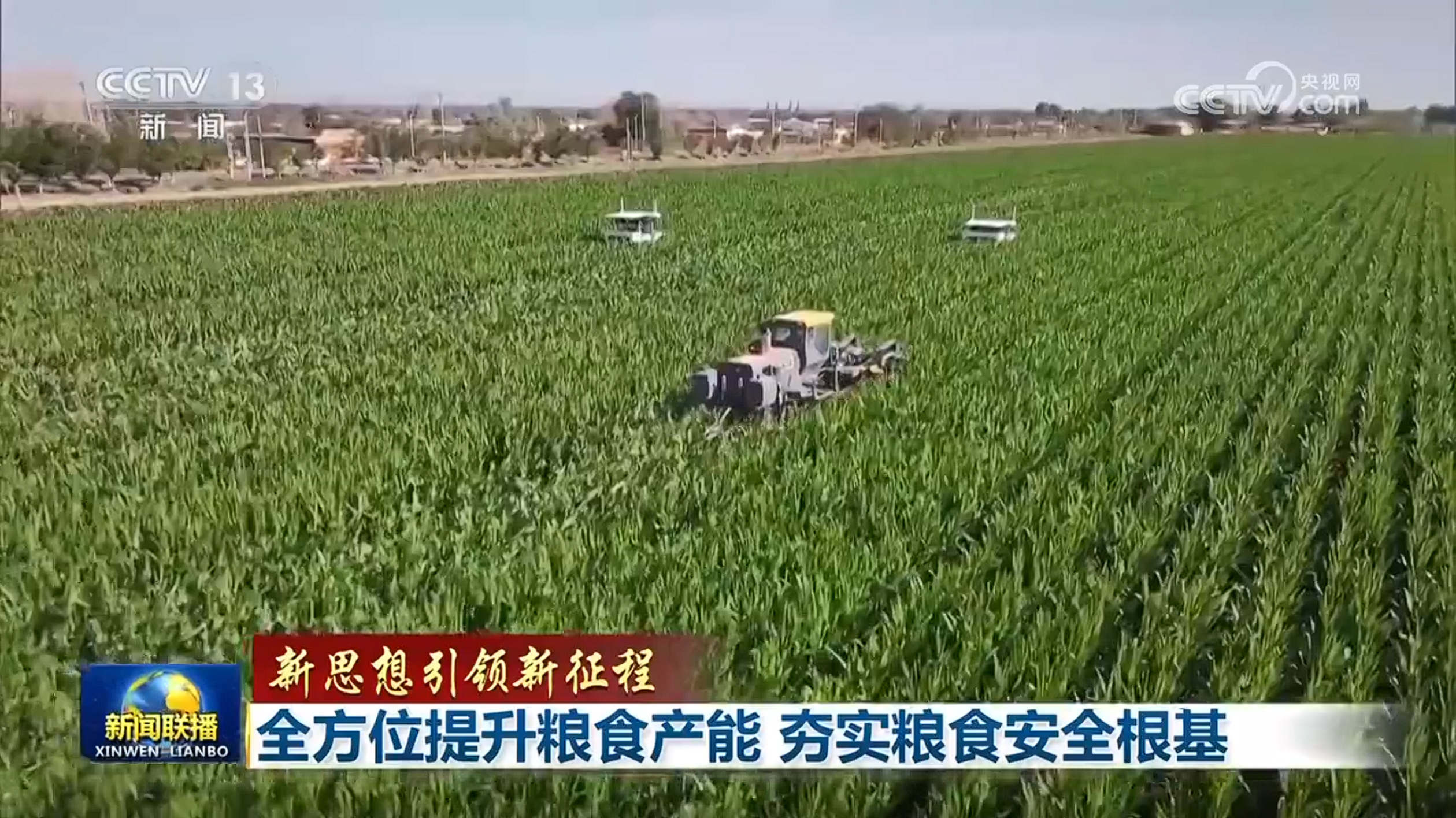 央視網消息(新聞聯播):糧食安全是“國之大者”。習近平總書記強調,要嚴守耕地紅線,高質量推進高標準農田建設,強化農業科技和裝備支撐,確保糧食和重要農產品穩產保供。今年以來,各糧食主產區緊盯實現糧食產量1.4萬億斤左右的目標,抓實抓細大面積單產提升措施,全方位夯實大國糧倉根基,端穩端牢中國人自己的飯碗。