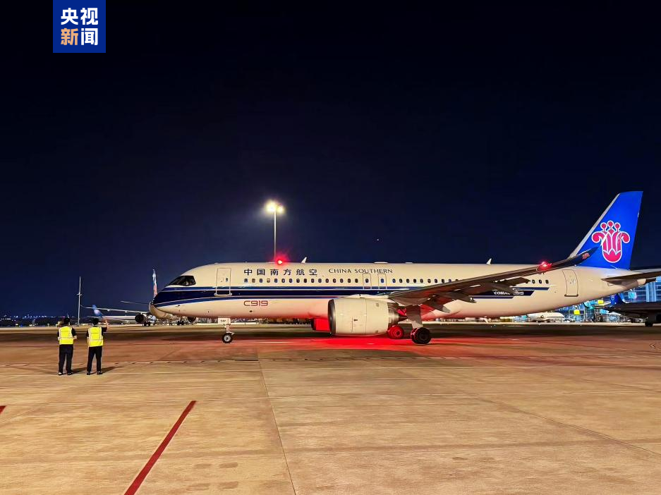 6月4日22時21分,中國南方航空由國產大飛機C919執飛的CZ3383次航班,搭載着139名旅客從廣州白雲國際機場起飛,於6月4日23時57分降落在河南南陽姜營機場。*國產大飛機C919商業運營再添新航線,這也是C919飛機首次正式亮相國內支線機場。*國產大飛機C919為助力加快“干支通,全網聯”的我國現代化航空運輸網絡體系建設,邁出關鍵一步。