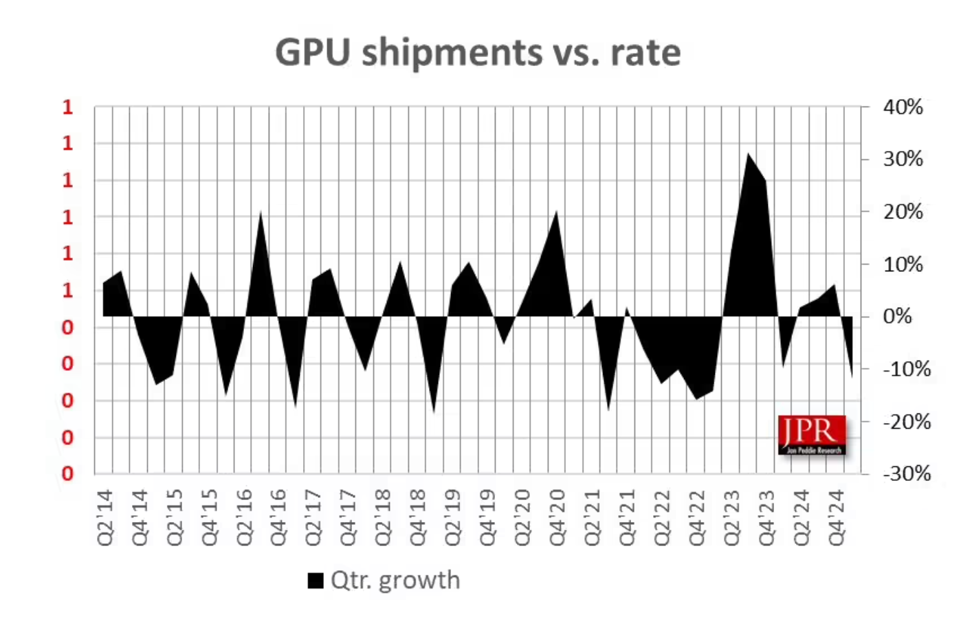 JPR 報告顯示:GPU 與 CPU 出貨量雙降