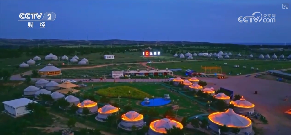 在九城宮景區,夏日“星空帳篷季”拉開帷幕。夜幕中,幾十頂蒙古包錯落有致地點綴在廣闊的草原,遊客們圍着篝火起舞,一片歡聲笑語。