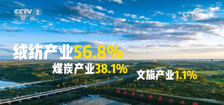 2024年,內蒙古鄂爾多斯東勝區罕台鎮實現地區生產總值176億元,其中,絨紡產業、煤炭產業、文旅產業分別佔地區生產總值比重的56.8%、38.1%和1.1%。