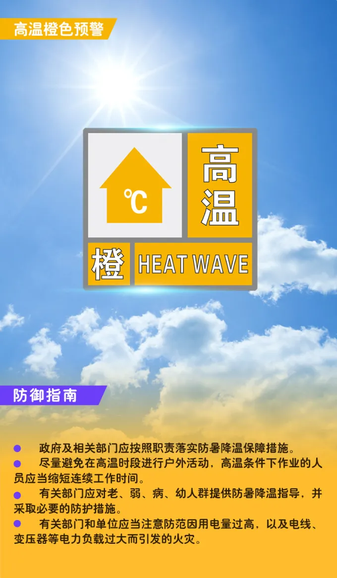 河南省氣象台2025年6月5日10時00分發布高温橙色預警:預計6月5日至7日,我省淮河以北大部將持續晴熱天氣。