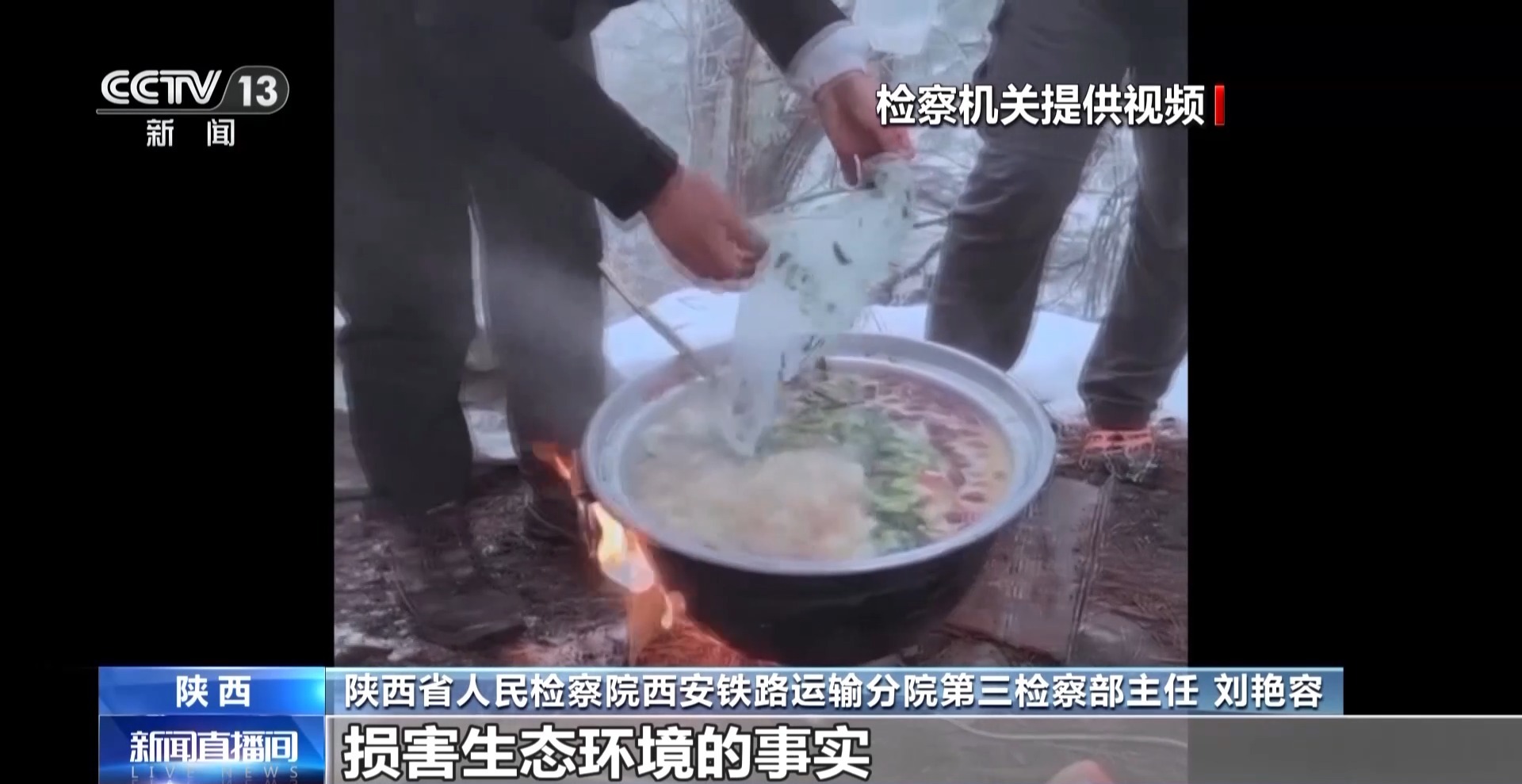 *陝西省人民檢察院西安鐵路運輸分院第三檢察部主任 劉豔容:*我們梳理查明,該公司2024年組織非法穿越秦嶺核心保護區155次,參與人數3808人,收取報名費670632元,以及穿越中存在破壞高山植被、生火做飯等損害生態環境的事實。