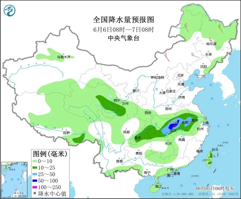 明天,青海東部、甘肅南部、江淮西部、江漢東部、湖南北部、重慶等地部分地區有中到大雨,其中,河南東南部、湖北北部和東部等地部分地區有暴雨,局地有大暴雨。