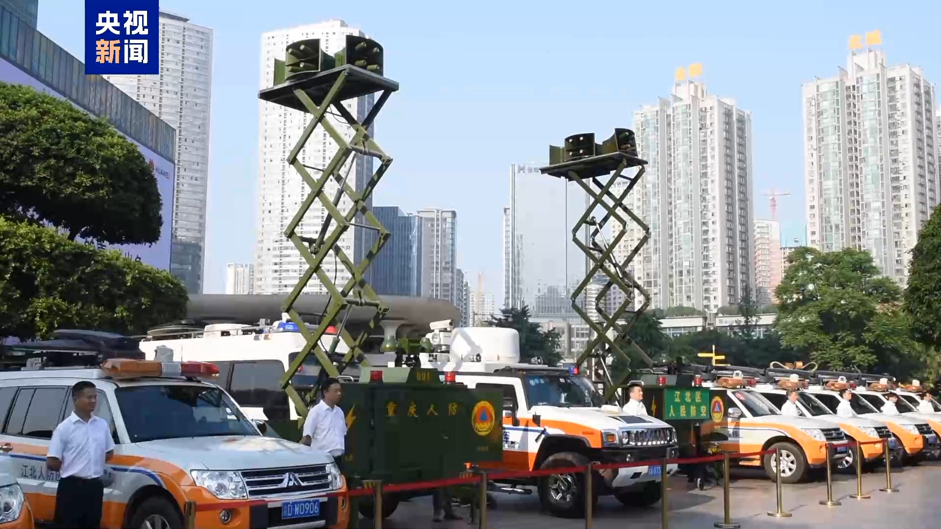 上午8時20分,防空警報準時鳴響,按照預先警報、空襲警報、解除警報、災情警報的鳴放標準,持續至8時32分。當天上午,由重慶市國防動員辦(市人民防空辦)、江北區人民政府主辦的重慶市2025年防空警報試鳴放暨國防動員(人民防空)宣傳教育活動,在觀音橋商圈廣場舉行。重慶社會各界人士還在重慶大轟炸慘案遺址等地舉辦悼念活動,傳承不屈不撓的城市精神。今年,重慶充分發揮全市已建成的1個市級應急廣播平台、40個區縣級平台和6.9萬餘組終端優勢,同步把防空警報試鳴放信號及時準確地覆蓋到全市9000多個行政村,不斷提高人民羣眾對防空警報信號的辨識能力。