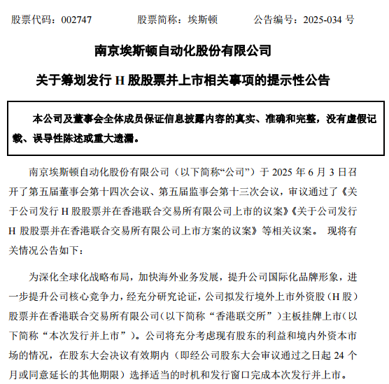 【環球網財經綜合報道】近日,南京埃斯頓自動化股份有限公司(簡稱“埃斯頓”,002747.SZ)在經歷上市十年來鉅虧後,邁出了赴港上市的重要步伐。6月5日,埃斯頓發佈公告,擬發行境外上市外資股(H股)股票並在香港聯交所主板掛牌上市,此舉旨在深化全球化戰略佈局,加快海外業務發展,提升公司國際化品牌形象及核心競爭力。