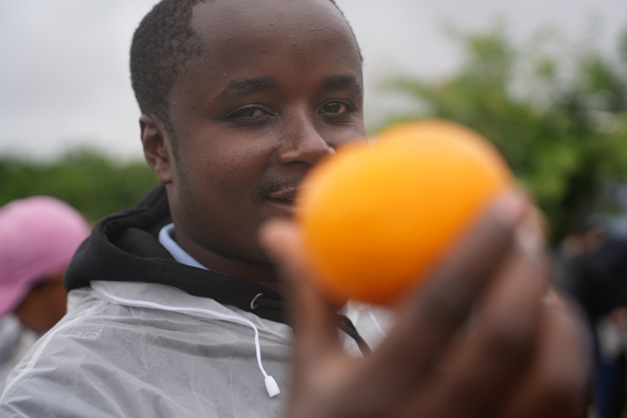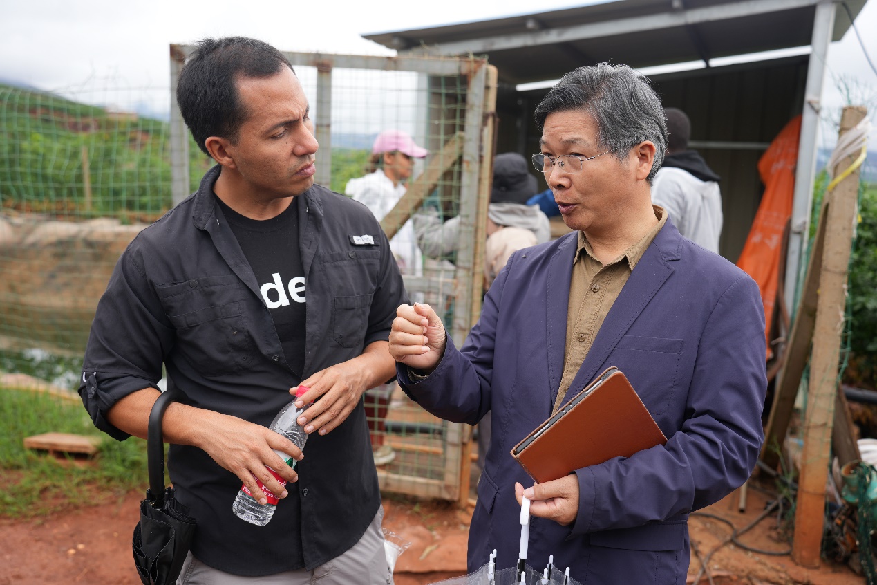 肯尼亞農創客凱萊布過去主要從事綠色冷鏈運輸相關工作,較少接觸農業源頭種植業。品嚐到示範園裏脆甜的沃柑,看到園區裏龐大的菌種發酵裝置,瞭解到這項技術可以實現畝產值28000元/畝,他連連點頭表示肯定。