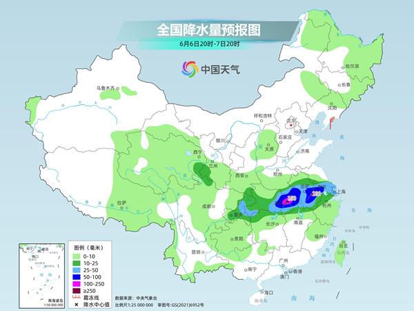 這次過程中,湖北東部、江西北部、安徽南部、浙江西北部、江蘇南部、上海一帶為降雨核心區域,6日至10日累計降雨量將達到80至160毫米,局地220毫米以上。