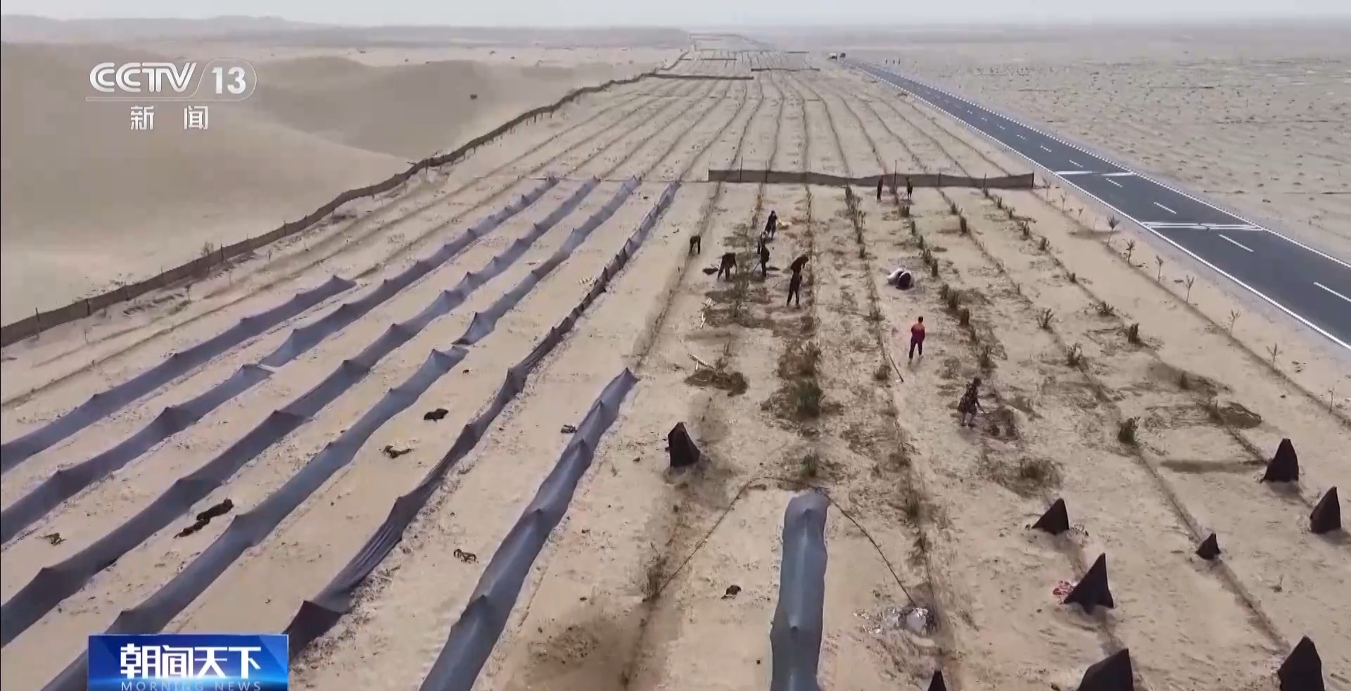 為構築生態屏障,國家有關部門聯合和田地區及於田縣政府,在受風沙侵襲最嚴重村莊的外圍,優先種植梭梭等耐旱、固沙能力強的先鋒植物,作為防範風沙侵害的第一道屏障。
