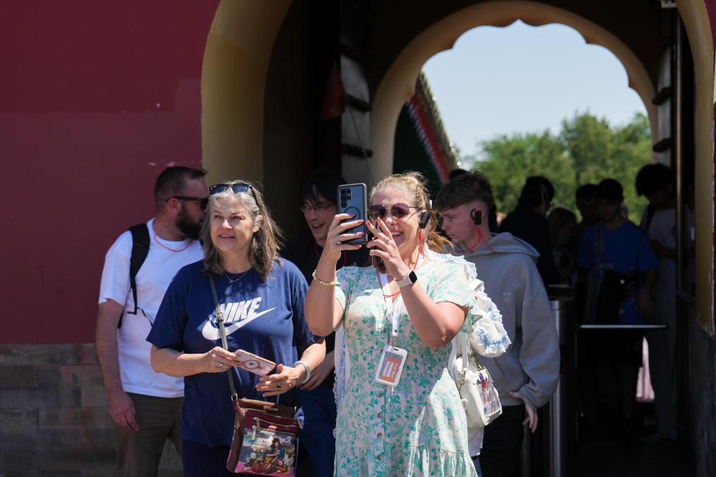 2025年5月1日,來自澳大利亞的遊客在北京天壇公園遊覽。新華社記者 鞠煥宗 攝