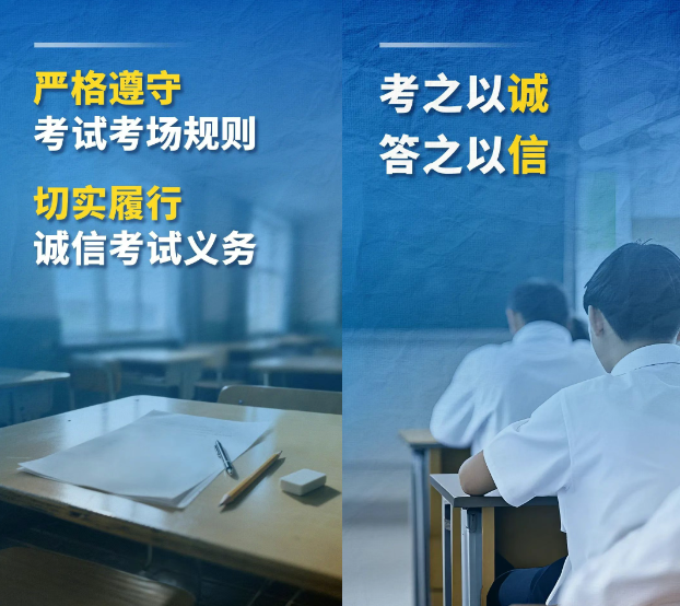 三要誠信參加考試,不要攜帶手機、智能手錶等各類無線通信工具及其他違禁物品進入考點(考場),如有攜帶需按考點要求統一存放至指定保管處,嚴格遵守考場紀律。