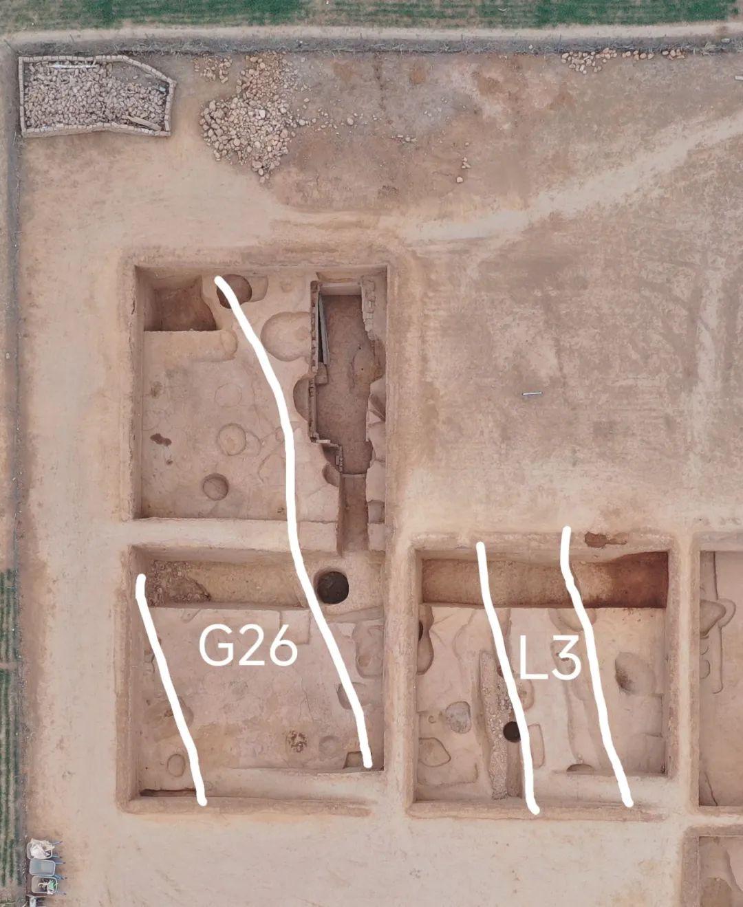 二里頭文化溝渠G26與南北向道路L3位置示意圖