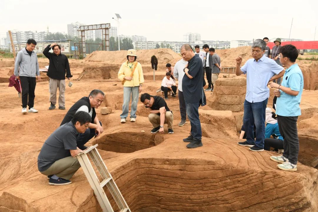 與會專家考察二里頭文化時期東西向道路L4發掘現場
