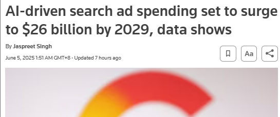 該研究公司稱,依賴傳統基於關鍵詞搜索廣告的公司,可能因 AI 搜索廣告日益普及而出現收入下滑,因為 AI 搜索廣告能為用户提供更大的便利性和更高的參與度。
