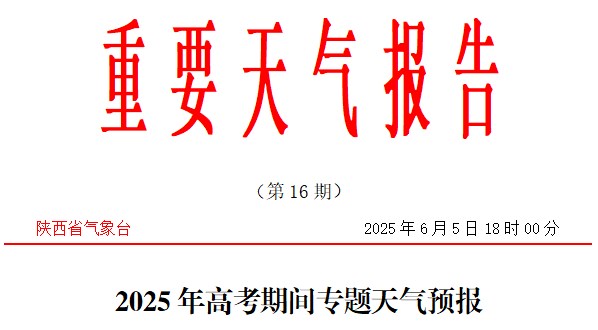 受短波槽東移影響,高考期間(6月7-9日)全省多陣性降水,其中7-8日白天陝北南部、關中南部和陝南大部有分散性小雨或陣雨,陝南南部局地有中到大雨,9日陝北南部局地、關中西部局地、陝南南部局地有分散性小雨或陣雨。降水期間伴有雷雨大風等強對流天氣。此外,6日關中東部部分地方,7-9日陝北東部部分、關中東部部分地方日最高氣温可達35℃以上。