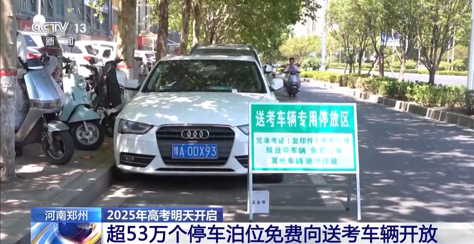 在河南鄭州,公交、城管等部門通過開展噪聲管控、開放免費停車泊位。在鄭州市一個考點附近,周邊的道路停車泊位上,已經設置了“送考車輛專用停放區”的引導牌。旁邊一個經營性停車場,考試期間也向送考車輛免費開放。據瞭解,今年高考期間,鄭州城管部門共設置各類高考停車泊位超53萬個。