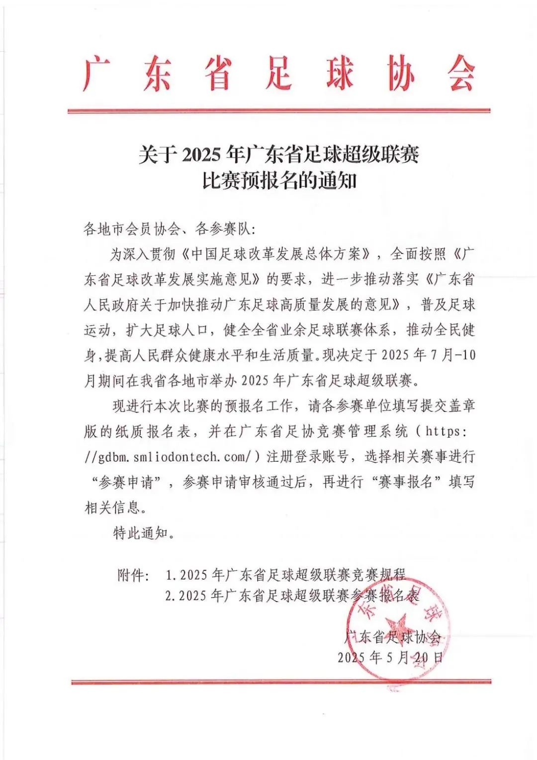 2025“粵超”預報名通知。圖/廣東省足球協會