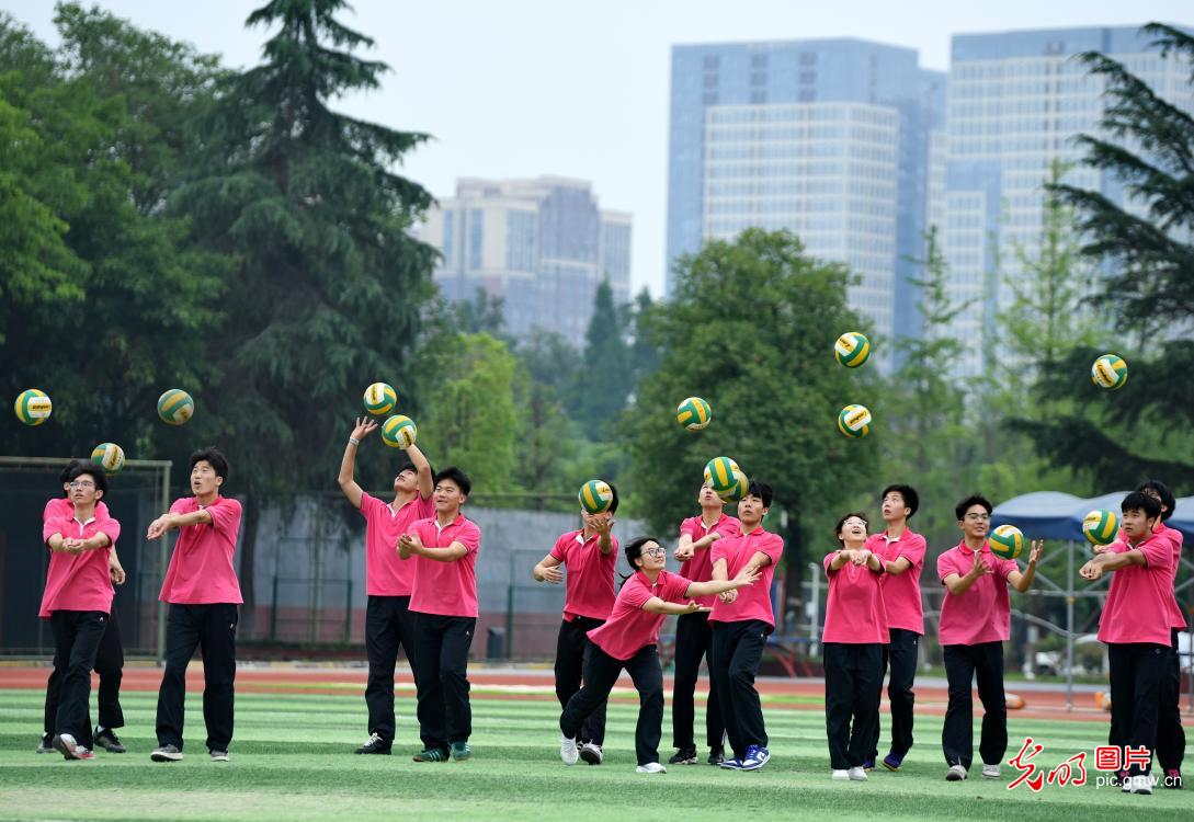 2025年6月3日,四川省成都藝體中學高三學生通過練習排球減壓迎高考。