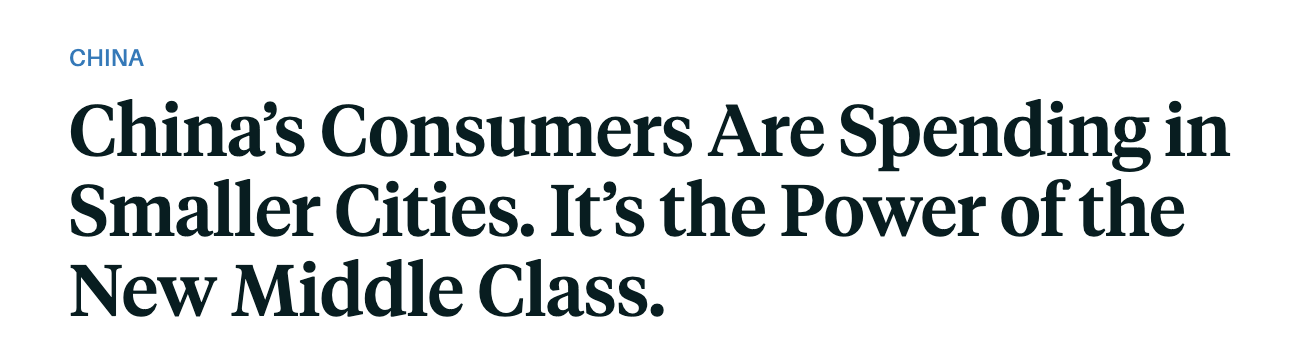 文章認為,對全球投資者來説,關鍵在於對中國消費市場的持久信心,要更深入地探尋真正的增長點。最有前景的消費活動或許並不只在北京的奢侈品購物中心,更是在那些關注度相對較低、但卻藴藏着巨大消費潛力的小城市。