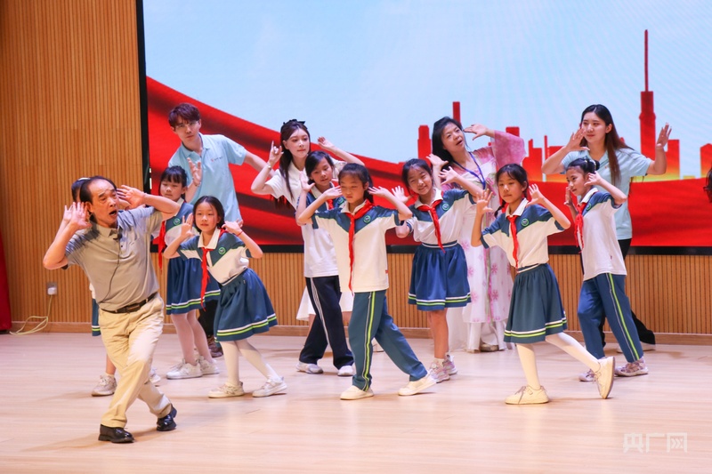松山小學師生跟着省級非遺傳承人學習花鼓戲身眼手法(央廣網記者 劉培俊 攝)