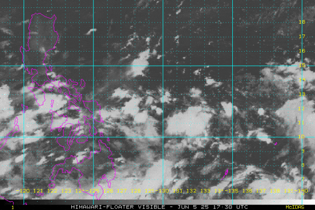 葵花-9號衞星監測到的熱帶擾動92W雲圖動畫(時間:6月6日01時30分至6月6日08時30分)。
