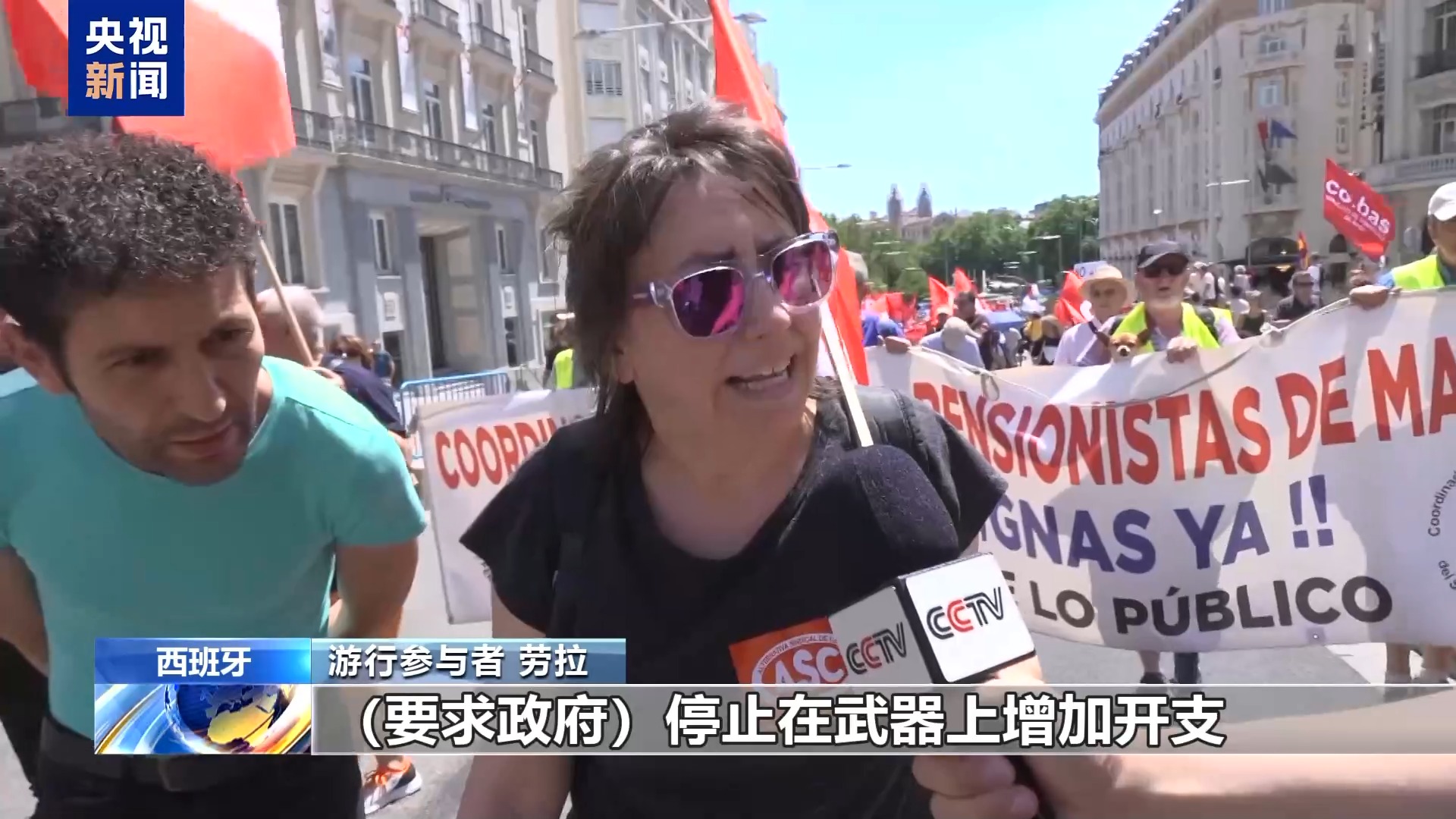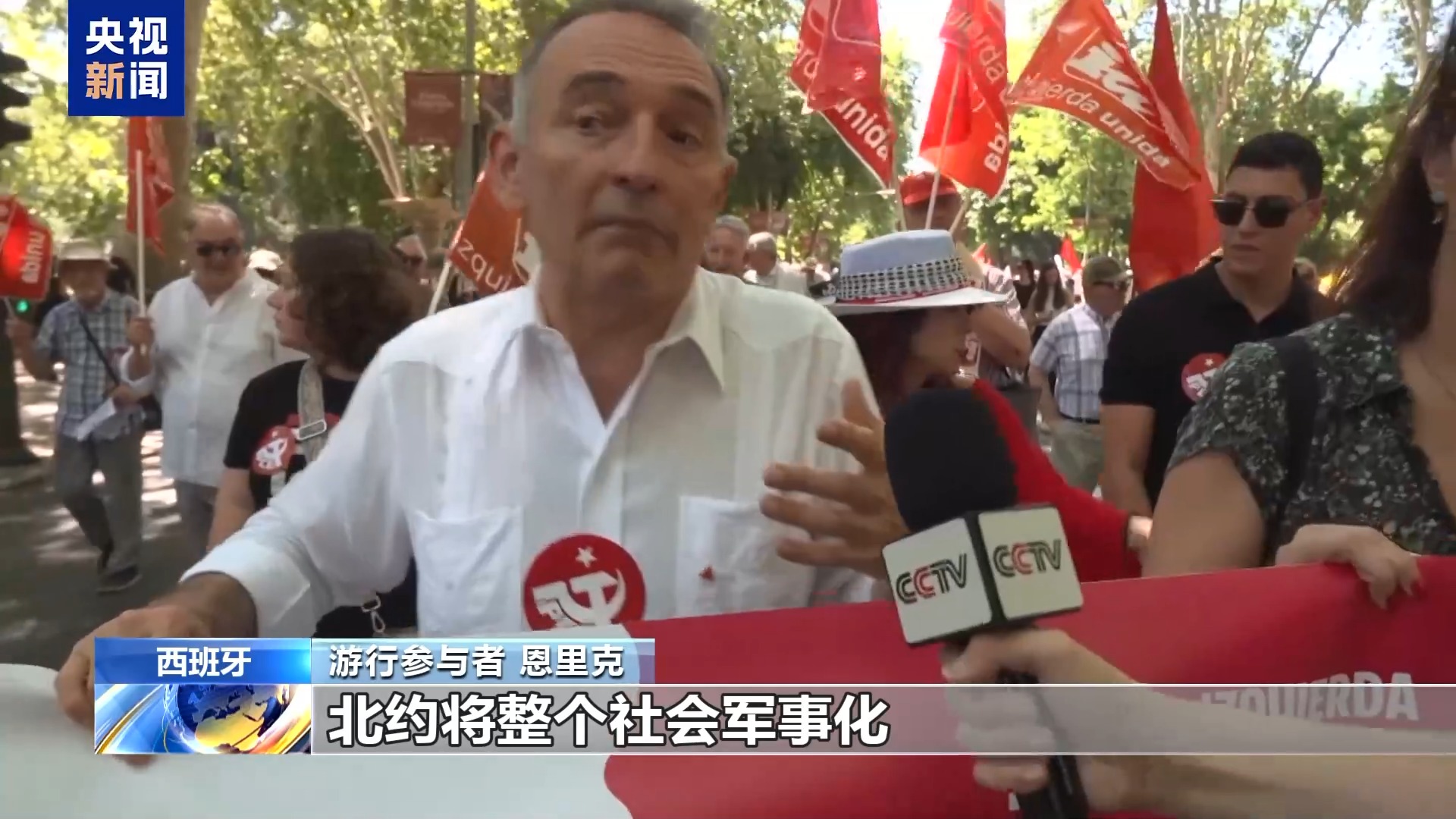 7日,西班牙首都馬德里市中心舉辦了反對戰爭和北約的遊行示威活動,數千名西班牙民眾走上街頭,高喊着“反對北約,拒絕軍事基地”的口號,在北約峯會在荷蘭海牙召開前夕,西班牙民眾對於北約要求各成員國提升軍費開支至生產總值5%的做法表示了反對。參與遊行的眾多民眾還高舉巴勒斯坦國旗,對加沙地帶受到以色列轟炸的巴勒斯坦民眾表達了支持,同時要求歐盟對以色列實施制裁。
