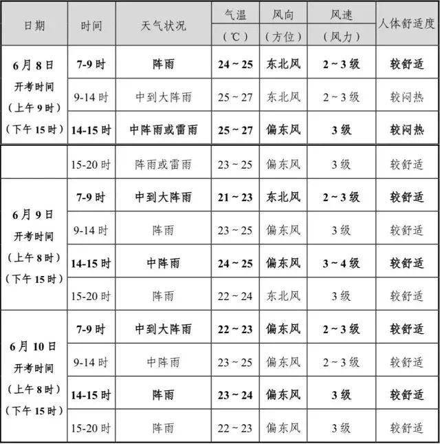 今日(8日)有大雨部分暴雨,提醒考生需提前做好防雨準備,合理安排時間,注意出行安全。部分地區有雷電天氣,注意防範可能對英語聽力考試的影響。9-10日仍有明顯降雨,請注意對交通出行、考務組織等的不利影響。