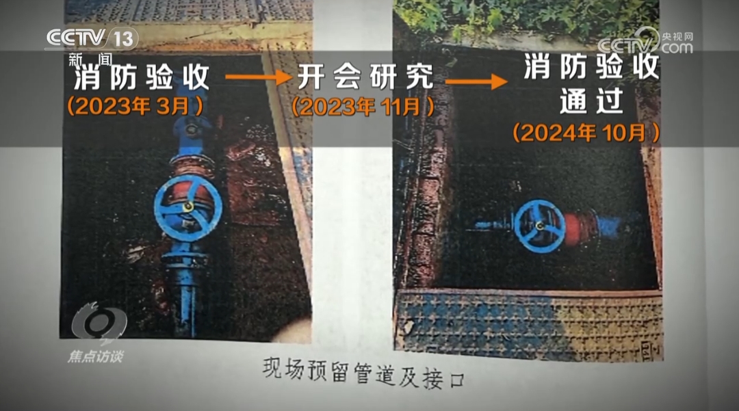 2023年3月發現消防設施存在問題,八個月之後,2023年11月,小藍經開區管委會才對這個問題進行研究,決定花費93萬元增設一個防火水箱。這個防火水箱一個多月的時間就建成了,一直拖到了2024年10月,消防才通過驗收。