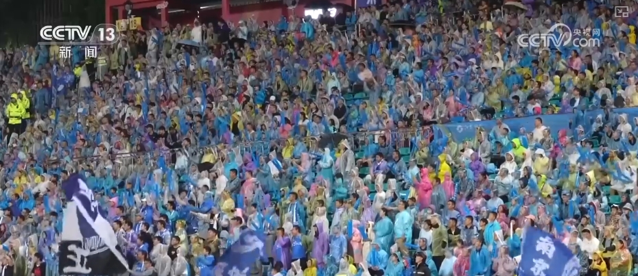 2025年端午期間,“蘇超”舉辦場地一票難求。綠茵場內,球員們雨中奔跑、戰術交流;看台上,觀眾們振臂吶喊;綠蔭場外,一張觀賽門票可兑換主場城市特色美食折扣。跟着球賽遊江蘇,成為許多球迷的假期選擇。