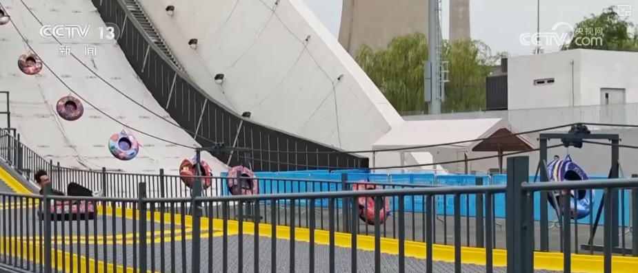 5月25日,佇立在北京首鋼園的滑雪大跳台煥然一新。首鋼利用它的本體空間結構,增設33米觀景平台、滑梯、繩網和攀巖牆,為園區引入了新的運動場景。人們可以體驗空中咖啡、繩降、小蹦極、攀巖、極速大滑道等多個項目。