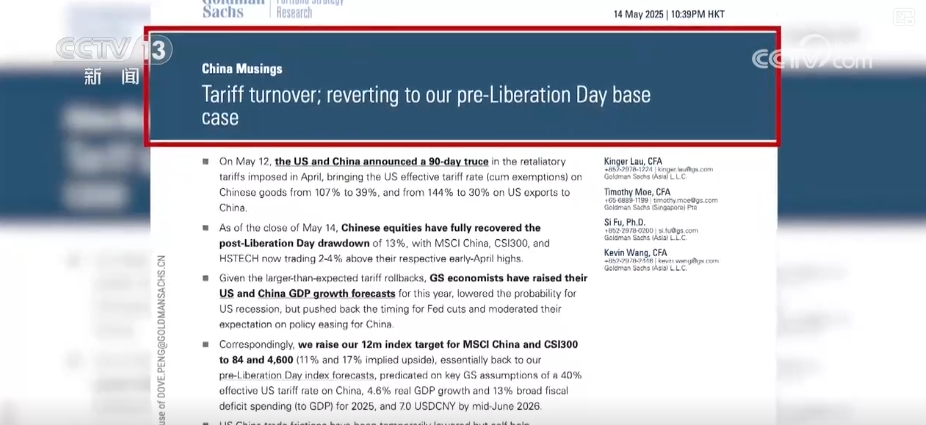 央視網消息: 近期,高盛、摩根大通等多家國際金融機構紛紛調高2025年中國經濟增速預期。記者在香港、深圳、上海等地採訪了這些機構的首席經濟學家,他們分別從宏觀政策、市場表現、產業動態等多個維度,對中國經濟增長的動能與潛力給出了積極評價。