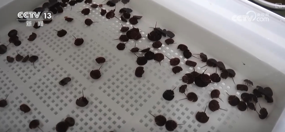 國家二級保護動物中國鱟,集中分佈在我國南部沿海,其生存與繁殖受水温條件影響較大。2025年,位於福建漳州的“雲霄中國鱟人工繁育基地”通過人工控温技術,誘導中國鱟提早產卵,為苗種生長爭取了更多高温週期。目前,基地實現孕育鱟苗超30萬尾的數量新突破。