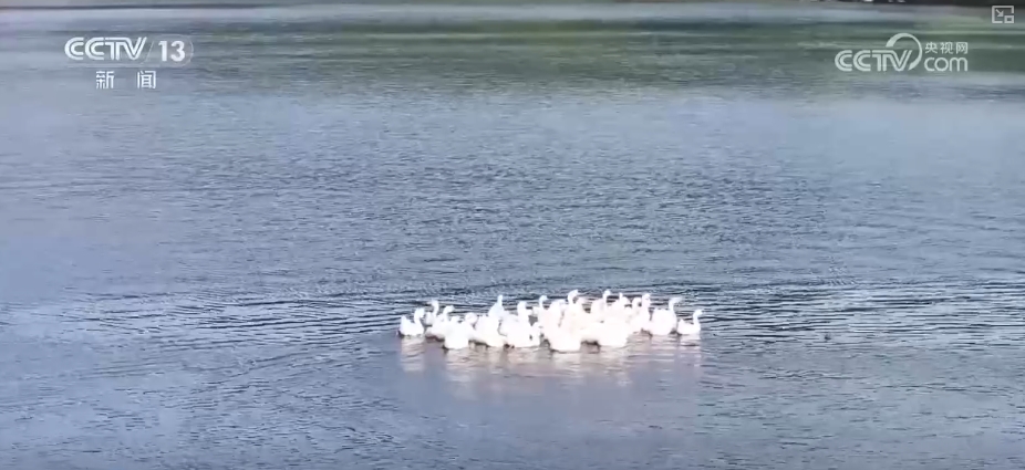 循環用水的水源就來自這處凹山湖,攜帶選礦底泥的水,通過管道排入湖中。經過沉澱後,再由水泵抽取,滿足整個礦山的生產需要。隨着礦山的生態修復,如今,這裏白鵝鳧水、魚兒嬉戲,已經恢復成一幅綠水青山的生動畫卷。