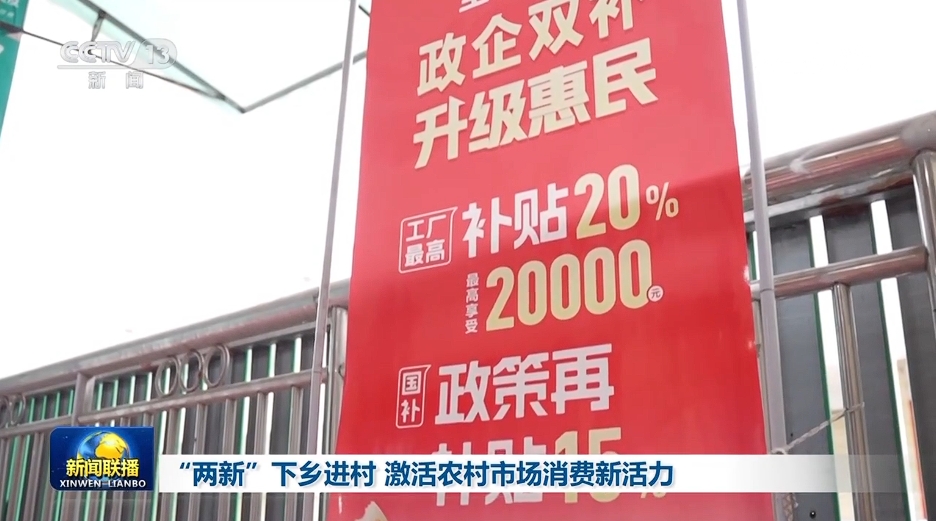央視網消息(新聞聯播):“兩新”政策實施以來,各地通過擴大補貼範圍、優化服務等措施,將實惠和便利送到鄉村,激發農村市場消費活力。