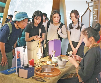 在園區中心地帶,一座“中華書簡”緩緩展開,山水意境躍然其上,這是大阪世博會的中國館。中國館佔地3500平方米,是世博會中佔地面積較大的外國自建館之一。館體上,用金、篆、隸、行、楷5種字體鐫刻的119句中國詩詞名句,盡顯中華文化的深厚底藴。中國館開館以來,已相繼成功舉辦四川、北京、天津、江蘇、海南等地方活動周,以及“崑曲進世博”“二十四節氣文化推廣交流活動”等專題活動,內容涵蓋文化展示、技術交流、產業合作等多個領域,現場氣氛熱烈。“這裏最讓我印象深刻,無論是零碳建築還是未來城市,我看到了中國在這方面的成就。”日本參觀者吉岡感嘆道。中國對未來城市的構想也給來自西班牙的參觀者赫瑪·米拉斯留下深刻印象:“我看到了一個比我此前印象中更現代化的中國。”