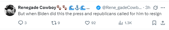 △網友評論:當拜登這麼做時,媒體和共和黨人要求他辭職。