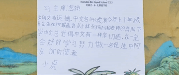 在精心製作的信箋裏,艾哈邁德·穆罕默德(中文名:小虎)把自己的心願也寫進了給習爺爺的信裏。